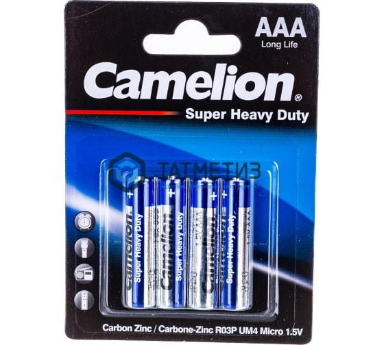 Батарейка 1.5В Camelion, R03 Blue BL-4, 3214 подойдет для питания приборов с низким энергопотреблением (карманных фонариков, часов, радиоприемников). Срок хранения составляет 3 года. В своем составе не содержит ртути и кадмия, поэтому безопасна в использовании и для здоровья. Поставляются по 4 штуки в одной упаковке, которая защищает элементы от влаги, пыли и царапин.