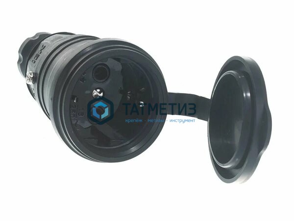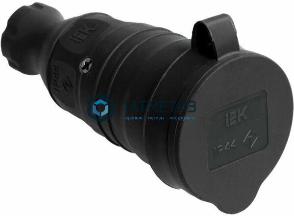 Розетка с/з каучук Омега РБп13-1-0м с защ.крышкой, переносная, IP44 черн. ИЭК PKR21-016-2-K02