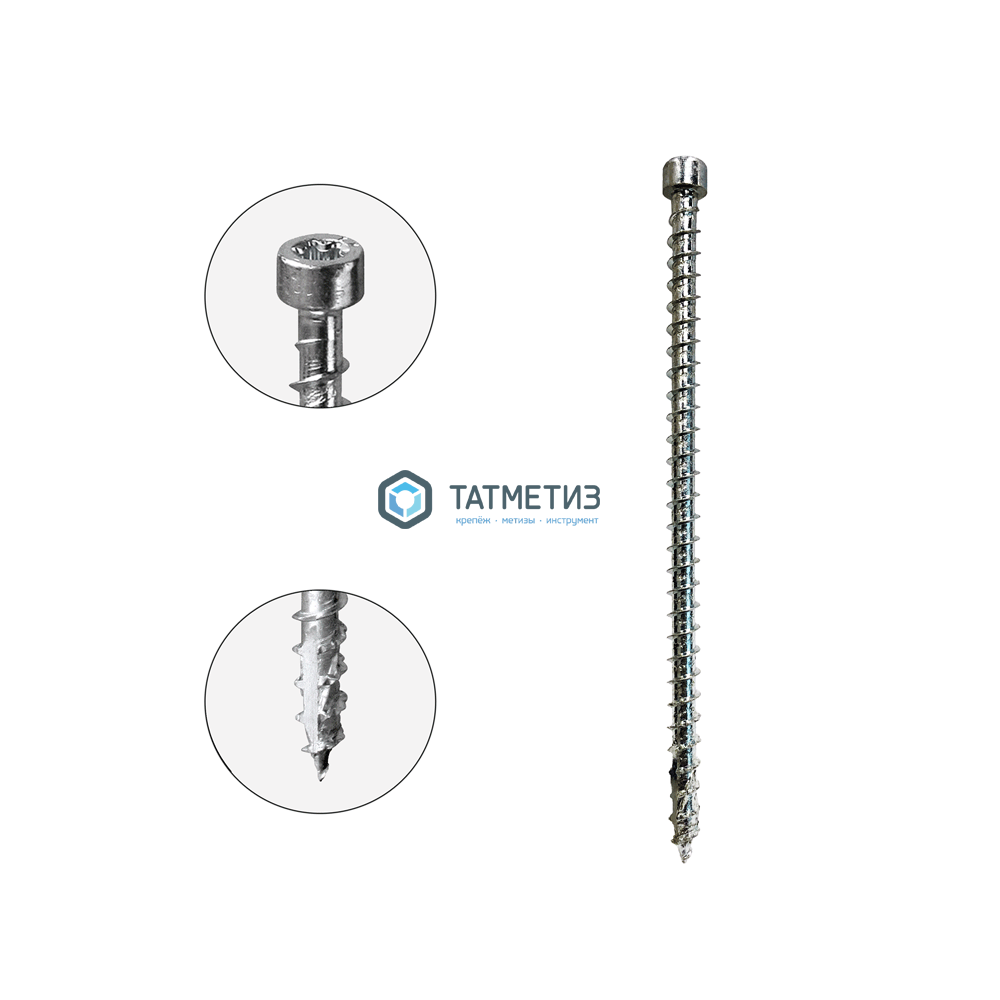 Шуруп-саморез ЦИЛИНДР головка 6х240 (100 шт/уп) белый цинк ПОЛНАЯ резьба