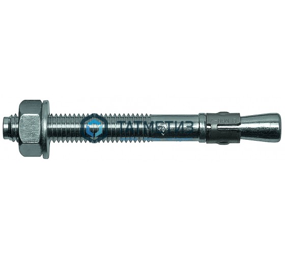 Клиновой анкер забивается молотком в заранее просверленное отверстие и затягивается гаечным ключом. Шпилька начинает перемещаться в сторону гайки вдоль продольной оси. Клин шпильки, при этом распирает гильзу, что способствует закреплению клинoвoго aнкepa в отверстии. Специальные зубцы на гильзе удерживают его от прокручивания в отверстии.